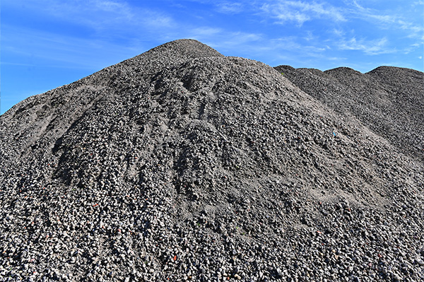 Der sortierte Bauschutt wird in Brecheranlagen zerkleinert, um eine einheitliche Körnung zu erreichen.